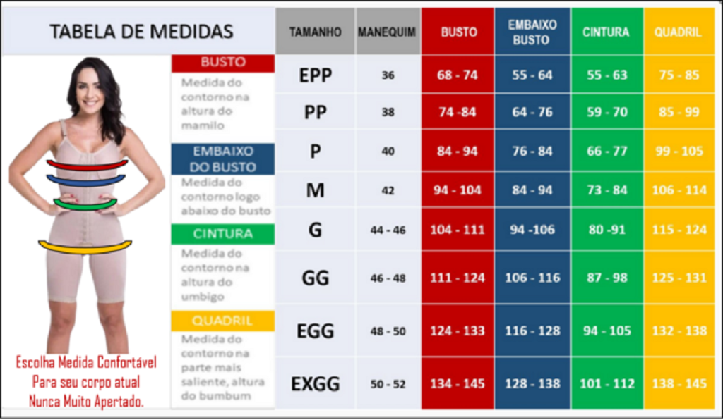 Encontre a Sua Medida Perfeita: Siga nossa tabela de medidas para garantir o ajuste perfeito e máximo conforto. O bem-estar está a apenas um clique de distância.